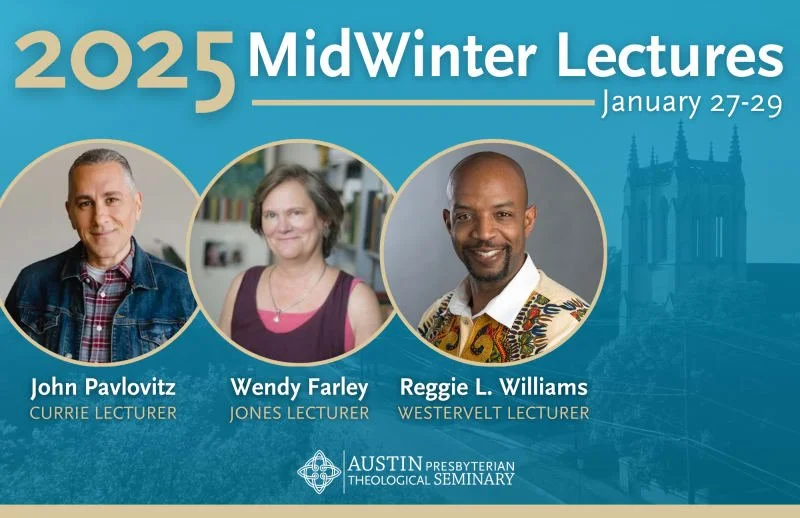 Registration is open for the 2025 MidWinter Lectures at Austin Seminary! We are thrilled for what is sure to be another wholesome and winsome MidWinters featuring John Pavlovitz, Dr. Wendy Farley, and Dr. Reggie L. Williams as our lecturers, respectively.